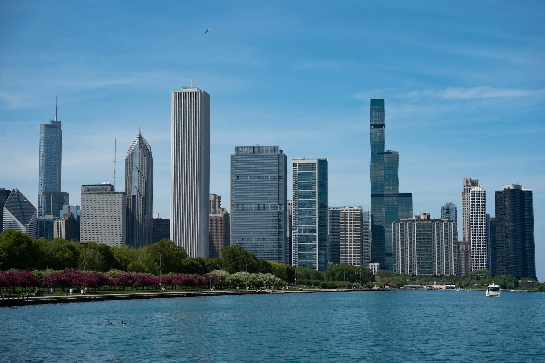 Idąc dalej ku wschodowi, dochodzisz wreszcie do brzegu jeziora Michigan. Z tej perspektywy miasto układa się za plecami – możesz obrócić się o 180 stopni i jednym spojrzeniem objąć drogę, którą przeszedłeś: od wąskich ulic Loop, przez otwarte place Millennium Park, po szerokie połacie Grant Park. To naturalne zakończenie spaceru, w którym architektura i przestrzeń publiczna grają na równych prawach.