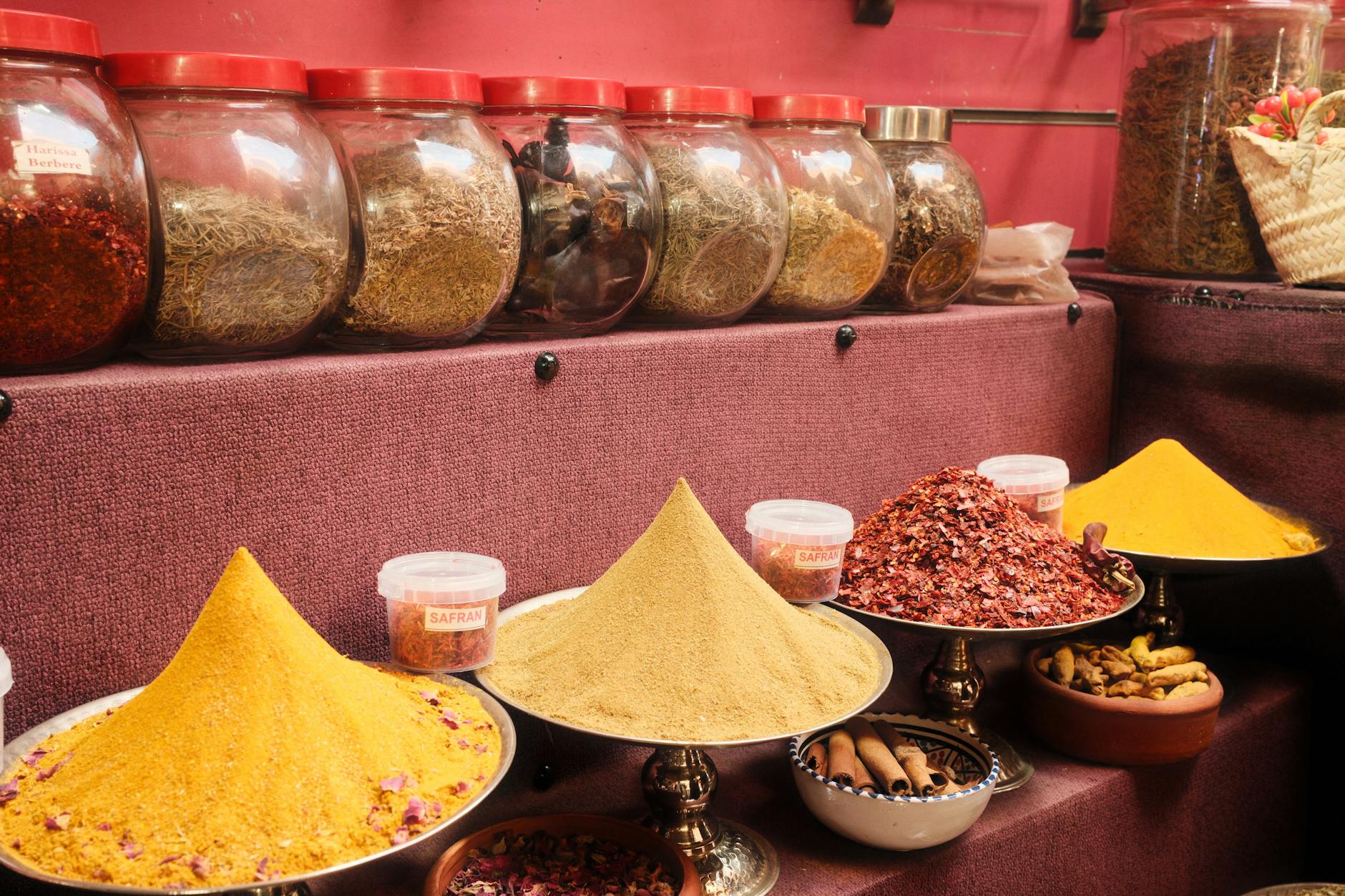 Stoiska z przyprawami potrafią oszołomić. Tęcza kolorów, aromaty w powietrzu, sprzedawcy proponujący „magiczne mixy”. Zamiast kupować wszystko, skup się na kilku rzeczach, które realnie wykorzystasz po powrocie.
